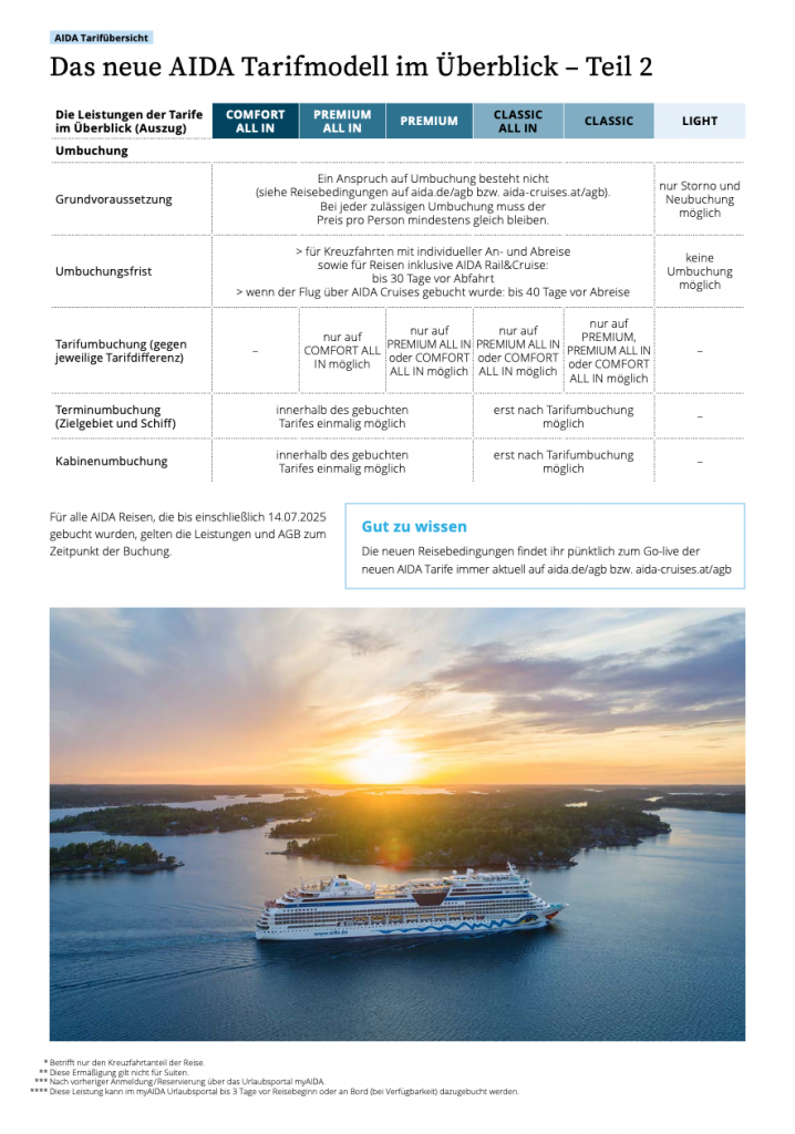 Ab dem 15. Juli 2025 führt AIDA Cruises ein überarbeitetes Tarifmodell ein. Damit wird die Buchung für Gäste noch transparenter, individueller und auf Wunsch mit mehr Inklusivleistungen ausgestattet. Wir zeigen Ihnen hier die wichtigsten Änderungen im Überblick und vergleichen sie mit dem bisherigen Modell.