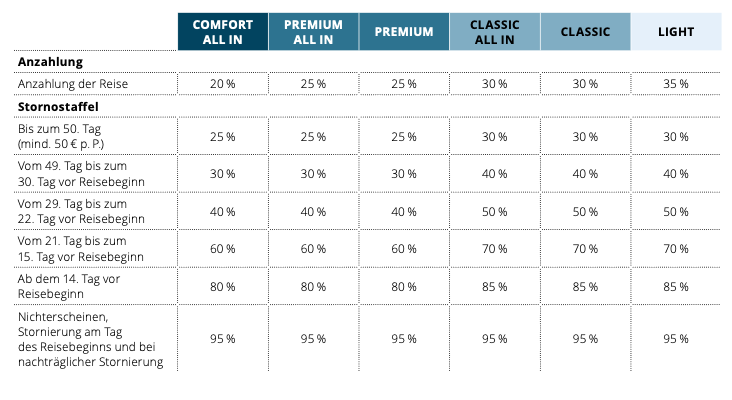- PREMIUM ist für alle Reisen langfristig buchbar, PREMIUM ALL IN für ausgewählte Reisen ab 5 Tagen Reisedauer